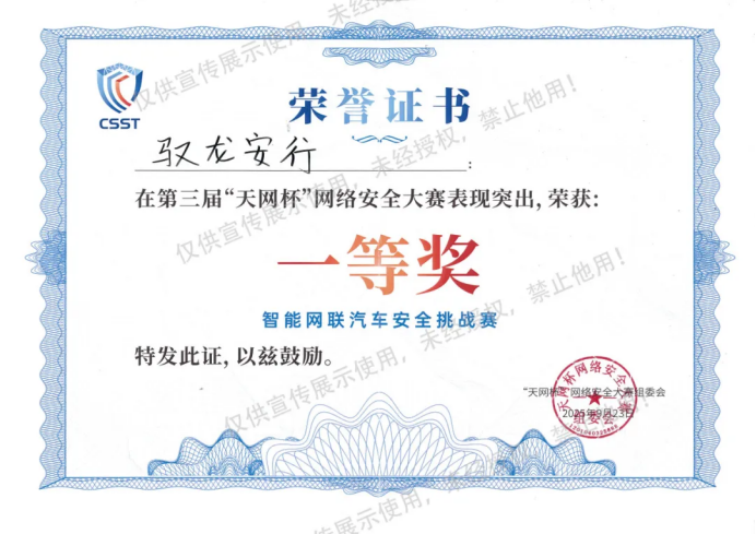 近日,第三届“天网杯”网络安全大赛决赛在天津滨海新区圆满收官,来自全国顶尖网络安全战队激烈角逐,tyc1286太阳成集团“驭龙安行”战队在智能网联汽车安全挑战赛中拔得头筹,荣获一等奖!