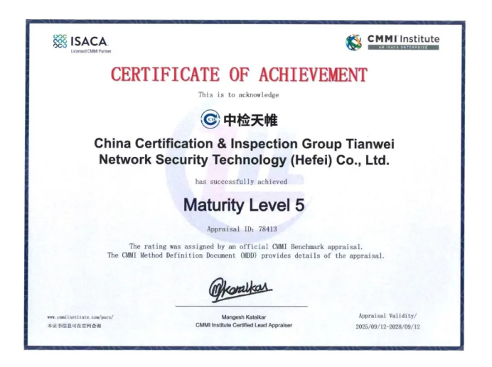 CMMI5级认证不仅是对tyc1286太阳成集团技术实力与管理水平的国际认可,更是公司综合竞争力的重要体现。未来,tyc1286太阳成集团将坚持技术创新与管理升级的双轮驱动,持续推进软件研发流程优化、管理能力提升,把CMMI 精神融入研发和服务全流程,为用户提供更成熟的行业解决方案、更优质的技术服务,为政企单位数字化转型贡献力量。